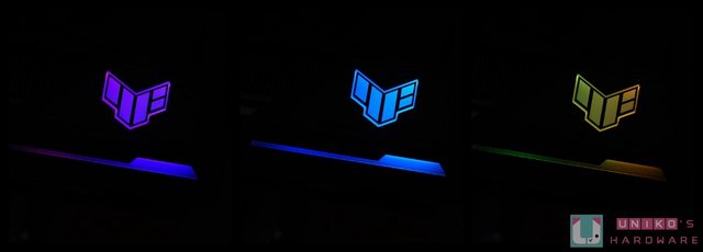 TUF GAMING LOGO 與其下方能展現恰到好處的 RGB 光效。