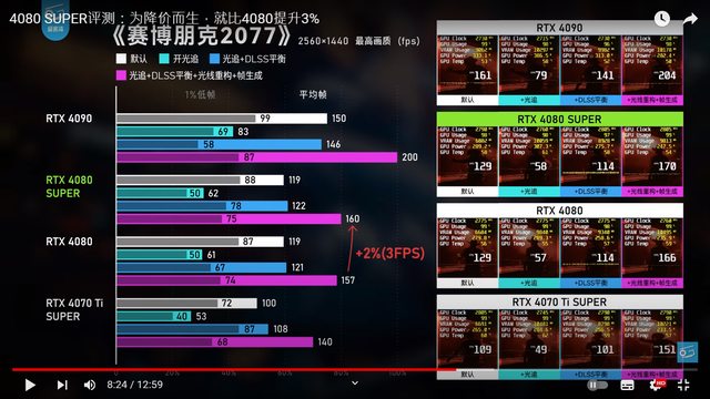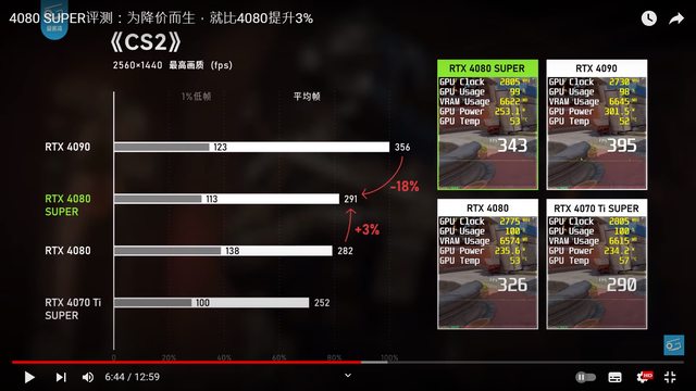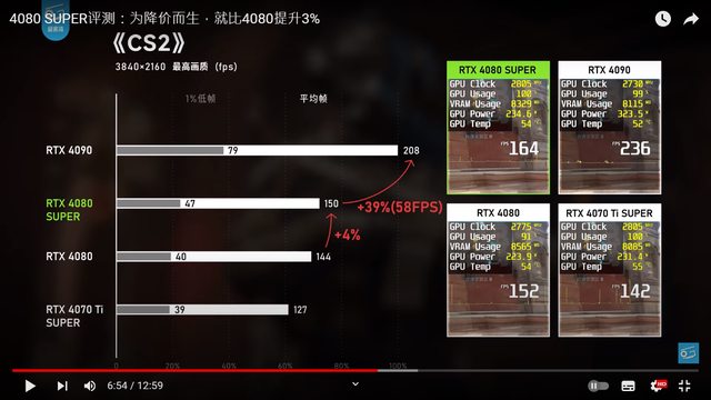 簡單來說 4080 和 4080super 差距大概快3% 不管是哪款遊戲2K還是4K遊玩 大部分幀數差別都是幾幀而已 兩者幀數差別幾乎肉眼看不出來差距 相較於4070super和4070ti super的提昇小蠻多的 https://i.imgur.com/3Ai6cVn.png CS2 2K