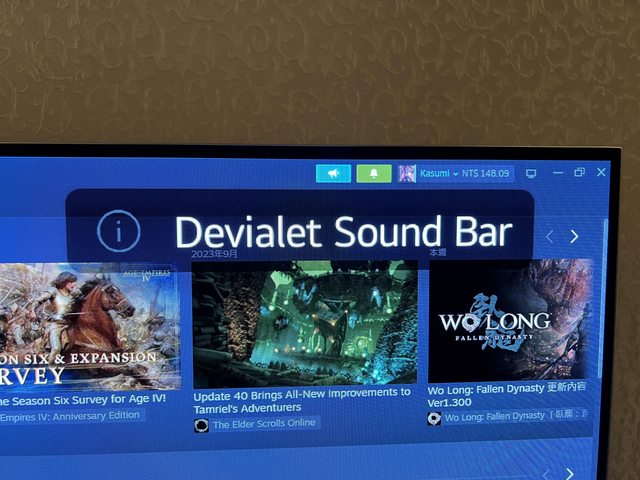 右上角會提示Devialet Sound Bar,表示已配對