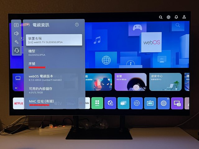 電視完整型號為OLED65G3PSA