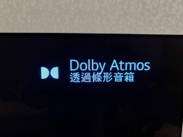 右上角會顯示「Dolby Atmos條形音箱」字樣