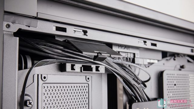 出整潔的感覺。主機板安裝空間可依尺寸進行調整,線材擋板高度充足,24PIN 電源線可剛