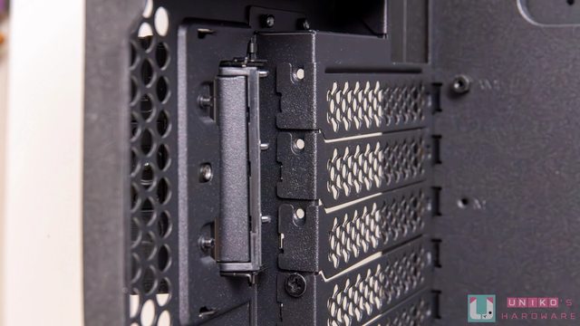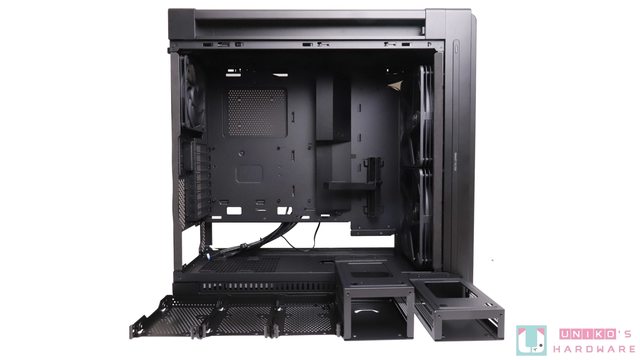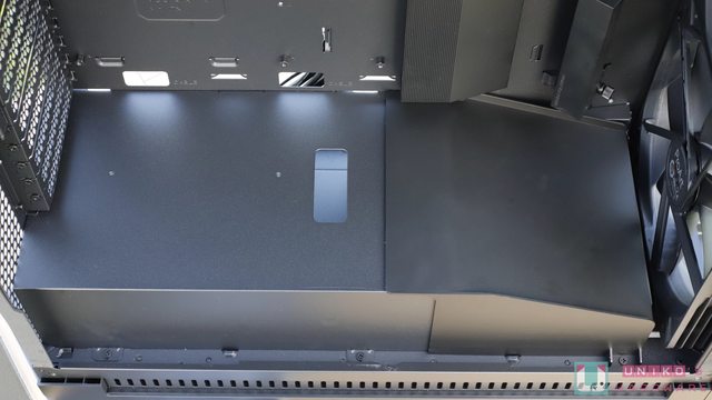 此處有硬碟支架,假如用不到也可以拿掉換取更大的整線空間,最後記得將遮罩安裝回去,