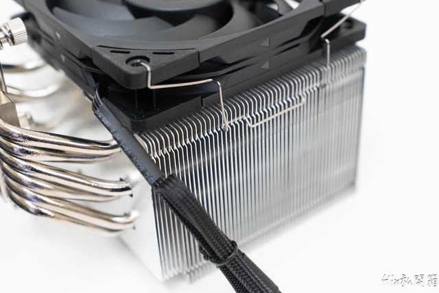這張是錯誤示範圖,其實要把塔體全部安裝完後才能將風扇扣上