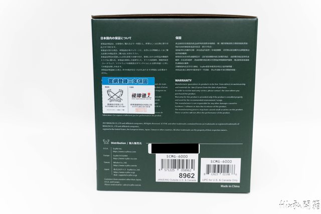 盒裝側面簡單寫著保固條款以及塔體的各項細部尺寸