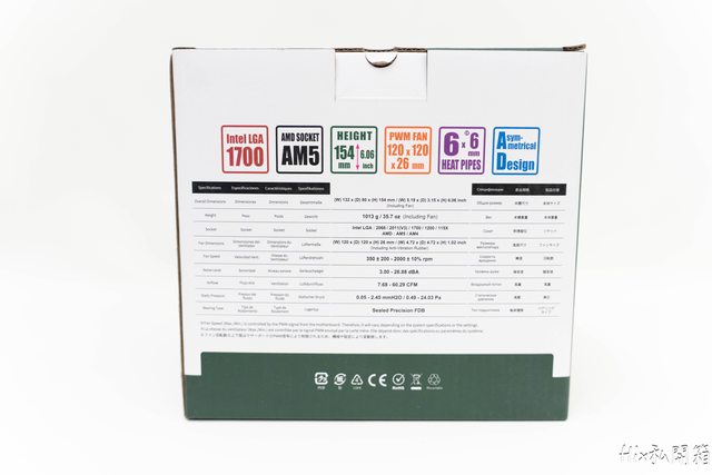 盒裝背面寫了散熱器本體的各種SPEC