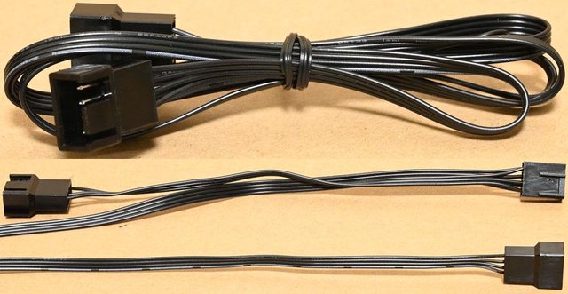 ▼隨附1條風扇4pin分接線,風扇4pin接頭接出1長1短4pin連接器,線路較長的連接器具