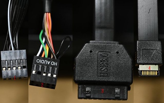 克風插座接頭,3為USB3.2 Type-A主機板接頭,4為USB3.2 Type-C主機板接頭