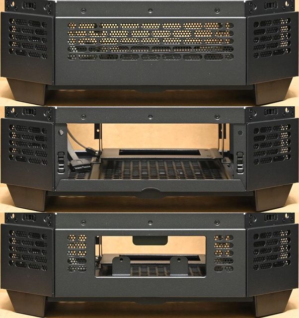 ○正面配置3片強化玻璃,內部組件一覽無遺。通風網孔蓋/強化玻璃/網孔板/蓋板均可免