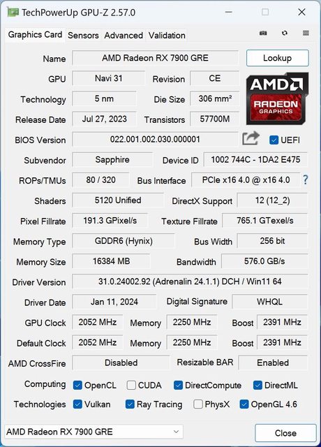 Radeon 7900GRE 參數規格