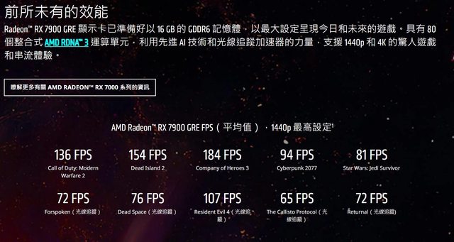 回到7900 GRE 定位AMD官方設定7900GRE為1440P遊戲卡