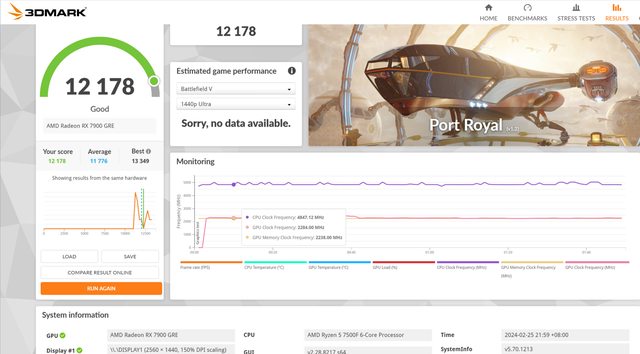 Port Royal 光追得分 12178