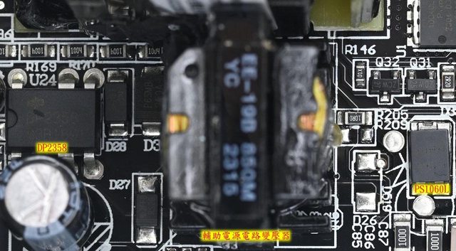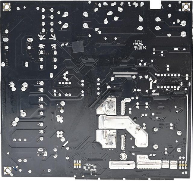 ▼主電路板背面沒有任何元件,焊點做工良好,於二次側區域加裝金屬板