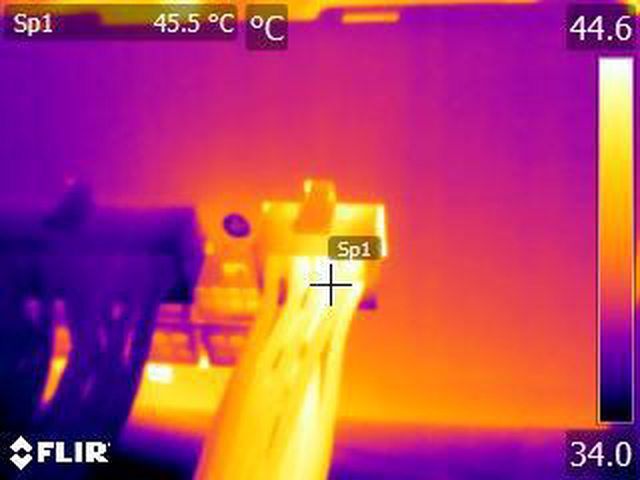 MOSFET/諧振電感(下圖)的紅外線熱影像圖(附註:安裝位置環境溫度會影響測試結果)