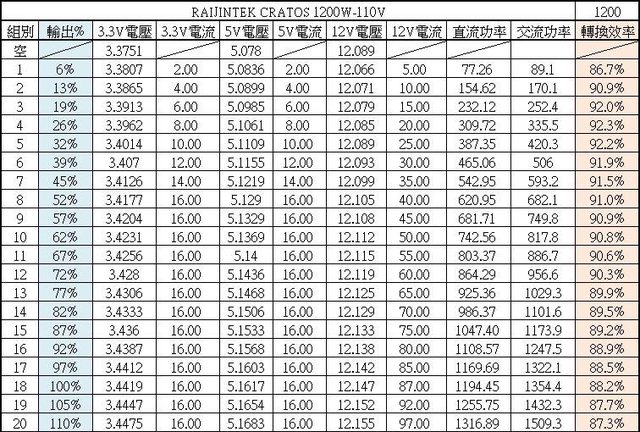 於綜合全負載輸出下12V/5V/3.3V各路低頻漣波分別為21.2mV/29.2mV/23.2mV;於純12V全
