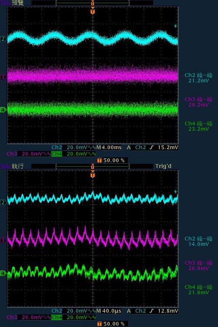 21.2mV/29.2mV/23.2mV,高頻漣波分別為14mV/26mV/21.6mV