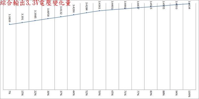 波形固定,只改變振幅。於綜合全負載輸出下12V/5V/3.3V各路低頻漣波分別為