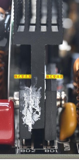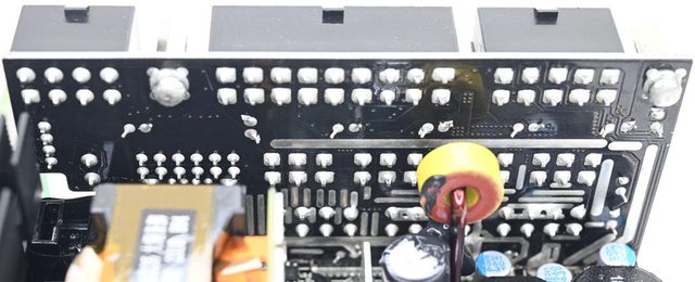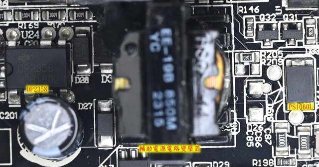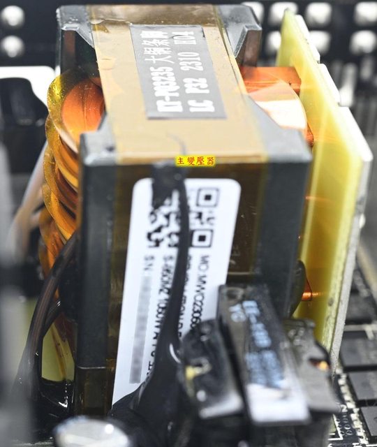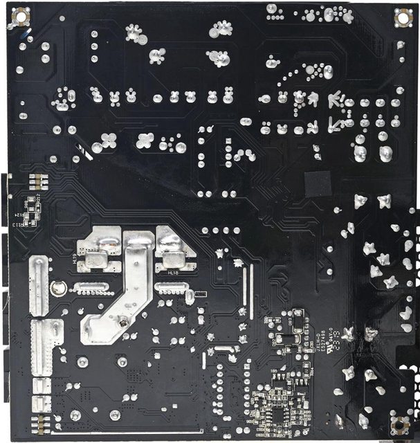 ○主電路板背面沒有任何元件,焊點做工良好,於二次側區域加裝金屬板,隔板於主電路