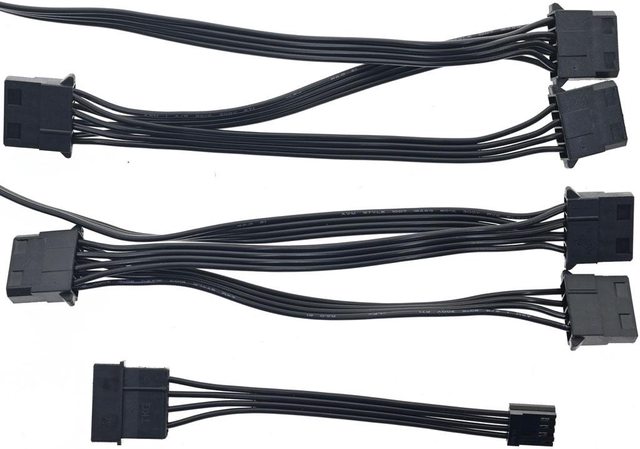 SATA(3個直式,9個直角)、6個大4P、1條大4P轉小4P轉接線。因為受到電源供應器插座數