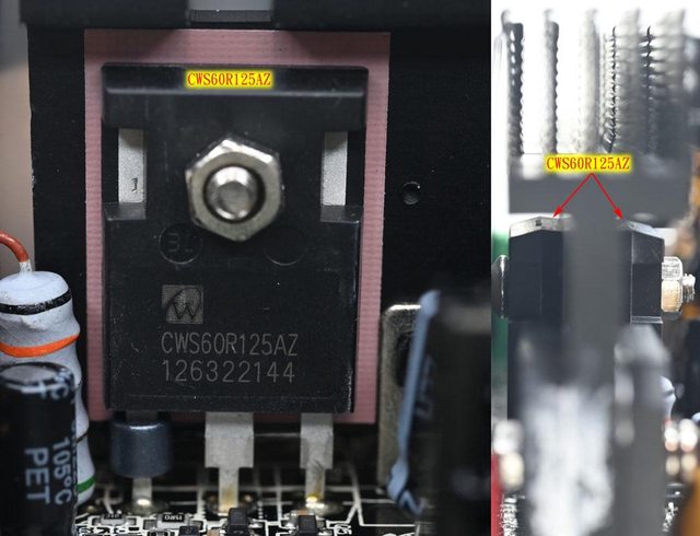 ○APFC MOSFET採用武漢芯源半導體,APFC二極體採用CRMicro華潤微電子,一次側MOSFET