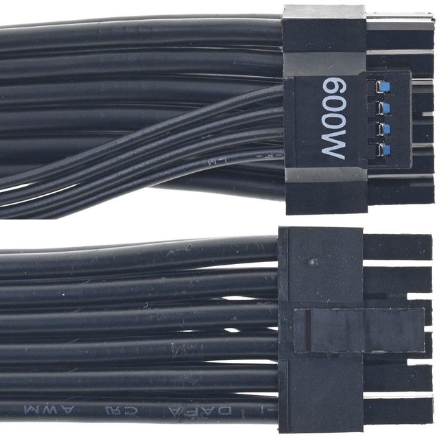 ▼1條電源端2個8P模組化插座轉12VHPWR黑色帶狀模組化線路,接頭標示600W,16/28AWG