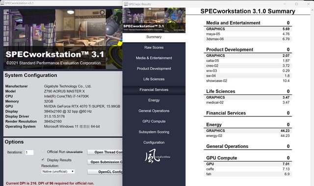 SPECworkstation 3.1 GPU效能測試: