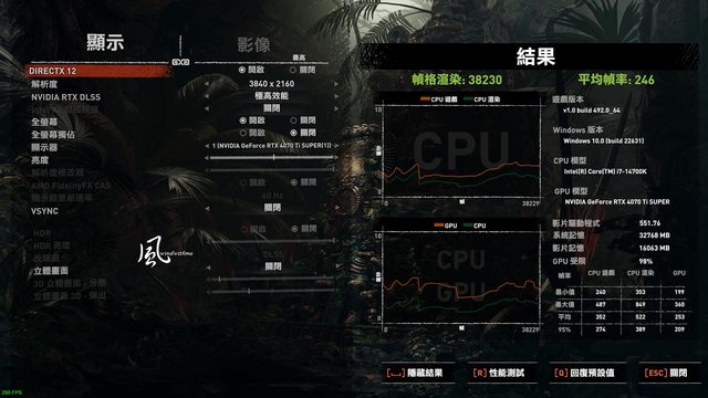 4K開啟DLSS Frame Generation與DLSS超高效能 => Overall Score 205.17 FPS,幀數增