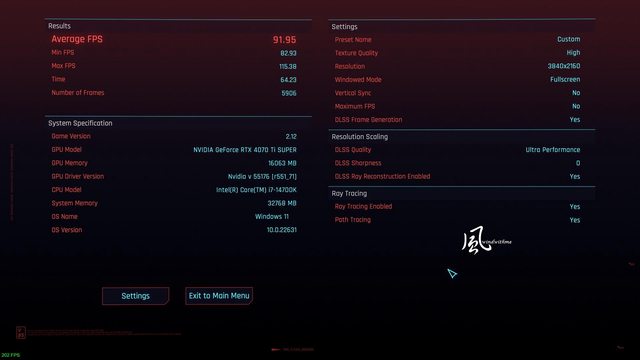 4K開啟DLSS Frame Generation、DLSS Ultra Performance、Ray Tracing => Average