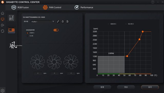 風扇內建相當具有辨識度的三環燈發光,支援RGB FUSION技術可透過技嘉控制中心調整燈