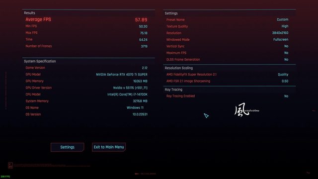 4K => Average FPS 57.89