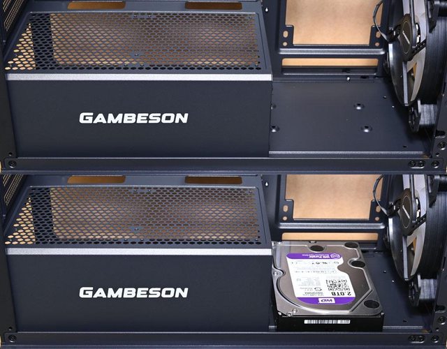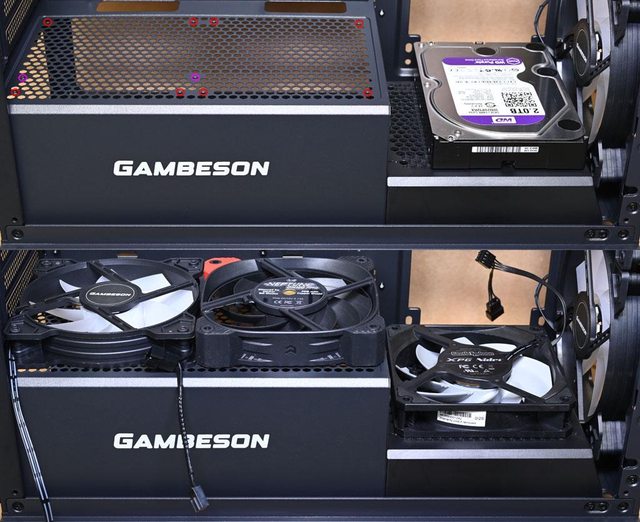 螺絲固定(紅色框),並額外配置3.5吋裝置固定孔(紫色框)