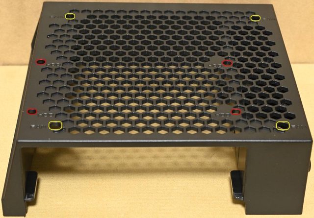 ▼前方底部固定架頂部有3.5吋裝置(紅色框)及120mm風扇(黃色框)固定孔