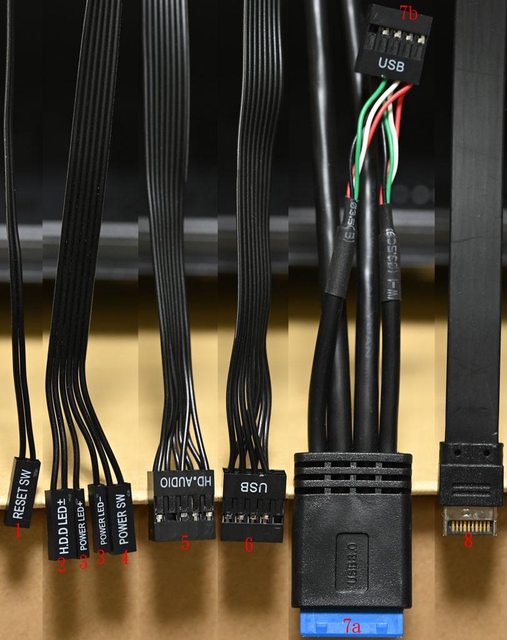 為電源開關接頭,5為耳機/麥克風插座接頭,6為USB 2.0 Type-A主機板接頭,7a為
