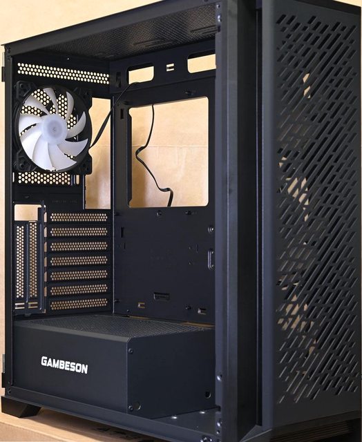 ▼後方預裝1個120mm ARGB從控風扇,主機板安裝底板上方鏤空,方便拆裝CPU散熱器背板