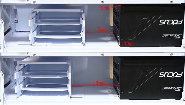邊緣距離最小75mm,最大105mm,電源供應器頂端與電源艙頂部距離9mm
