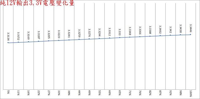 ○偏載測試,12V維持空載,測試3.3V滿載、5V滿載、3.3V/5V滿載的3.3V/5V/12V電壓變