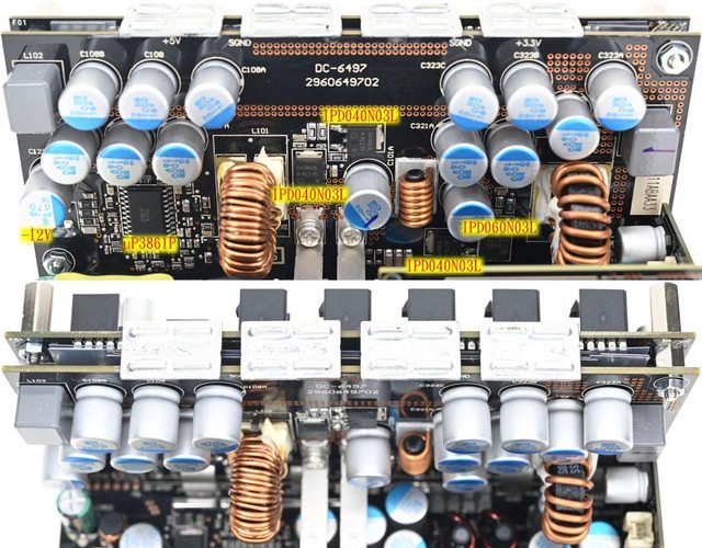 3.3V/5V DC-DC MOSFET採用Infineon。APFC及一次側MOSFET採用TO-247封裝