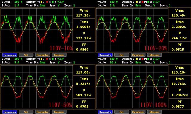 ○輸出無負載時12V帶有小振幅高頻漣波。於綜合全負載輸出下12V/5V/3.3V各路低頻漣波