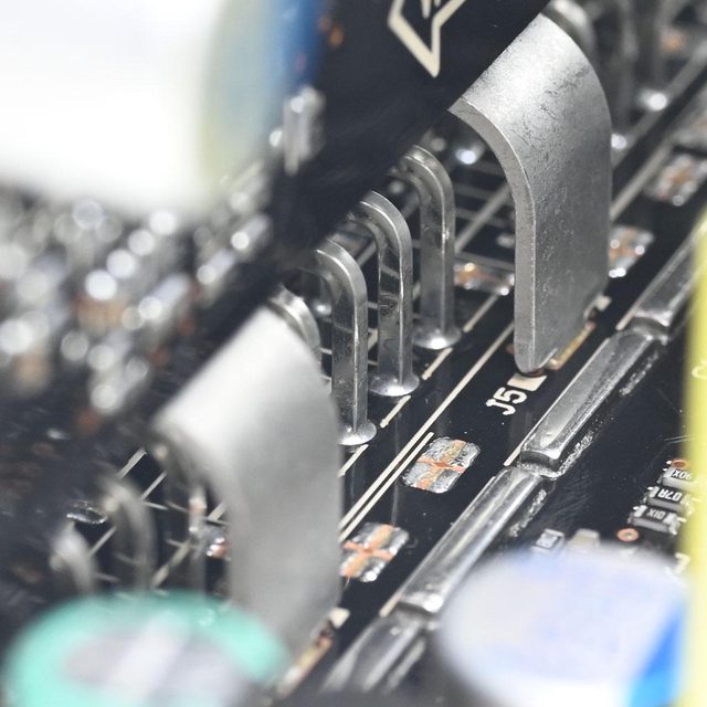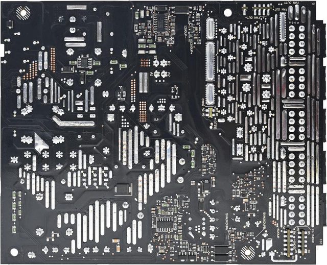 ▼主電路板背面焊點做工良好,大電流線路有敷錫