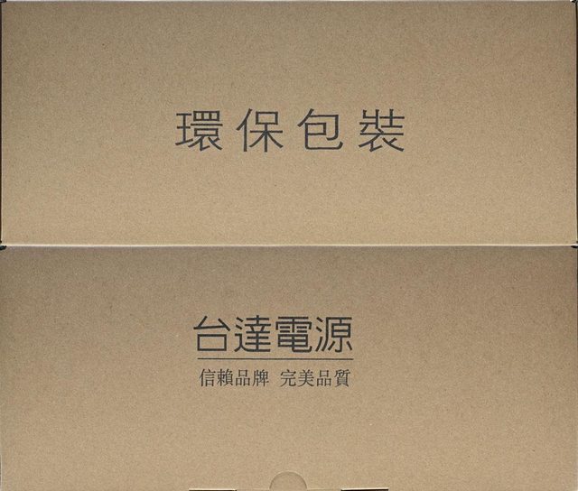 ▼外盒上/下側面有環保包裝及"台達電源 信賴品牌 完美品質"字樣