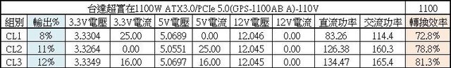 ○熱機下3.3V過電流截止點33A(132%),5V過電流截止點37A(148%),12V過電流截止點