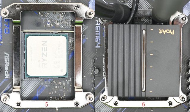 ▼安裝於AMD AM5/AM4平台前,先將主機板原裝散熱器托架拆除,只保留原裝散熱器背板