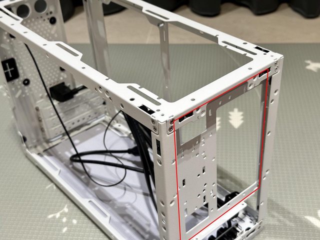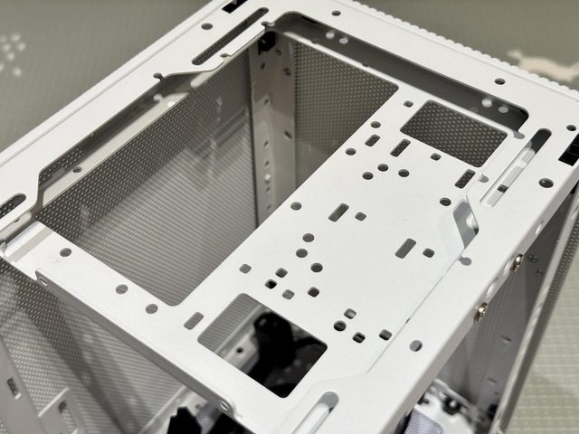 只剩骨架的Meshroom D,側邊為可拆除的240/280mm風扇/水冷排安裝支架。