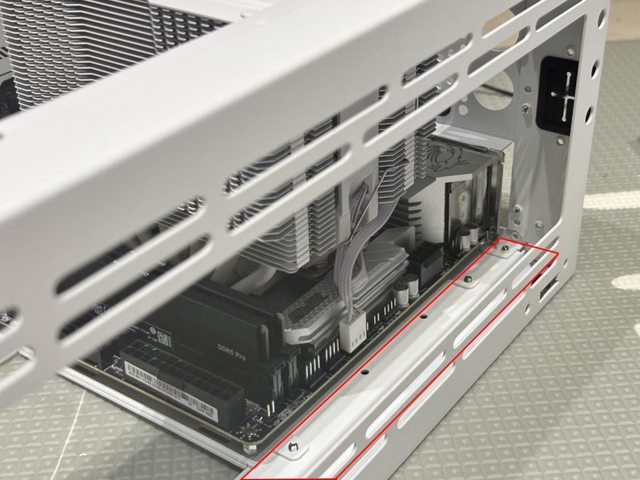 是使用配件內附的長銅柱將電源直接安裝在機殼上方。