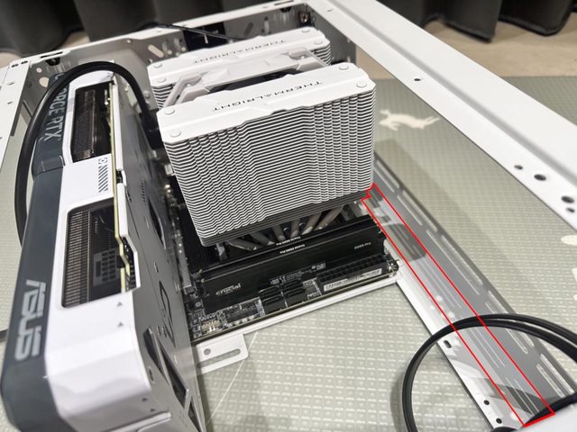 裝完後上方雖然空間還是不足以安裝冷排,但至少能安裝標準厚度之12/14cm風扇,對於
