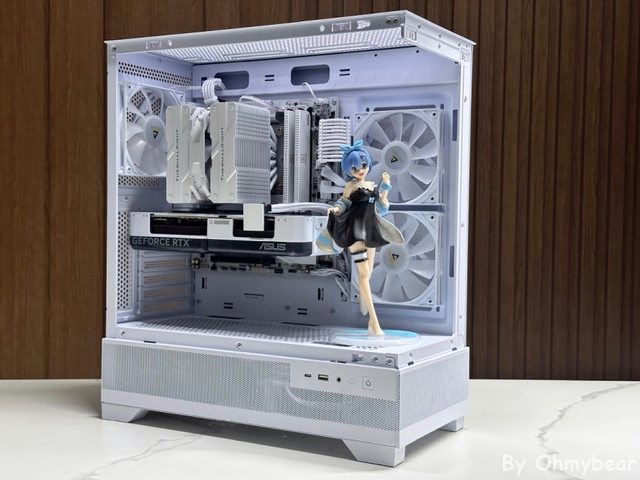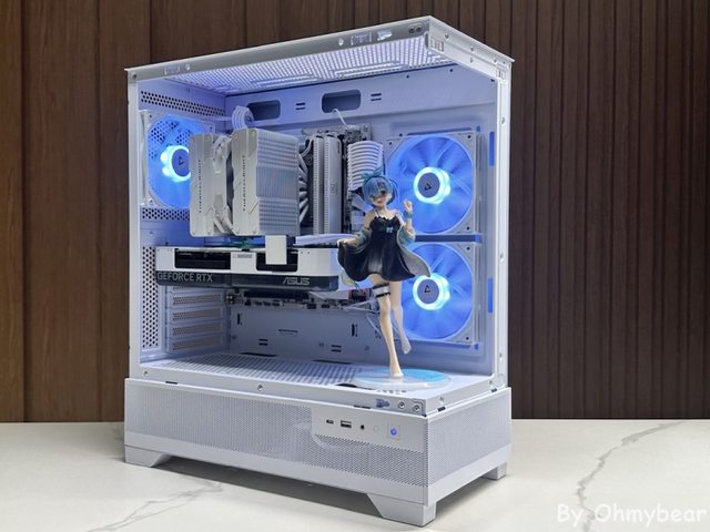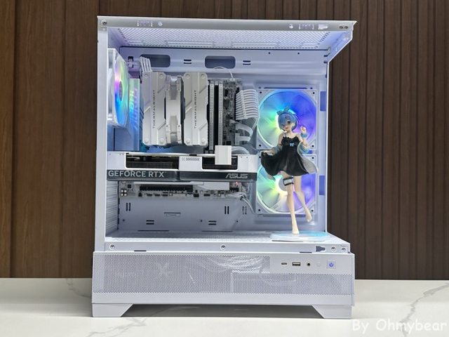 也使用風冷散熱器裝機嘗試不同的展現方式, 再搭配雙風扇短卡讓前方有足夠空間擺放