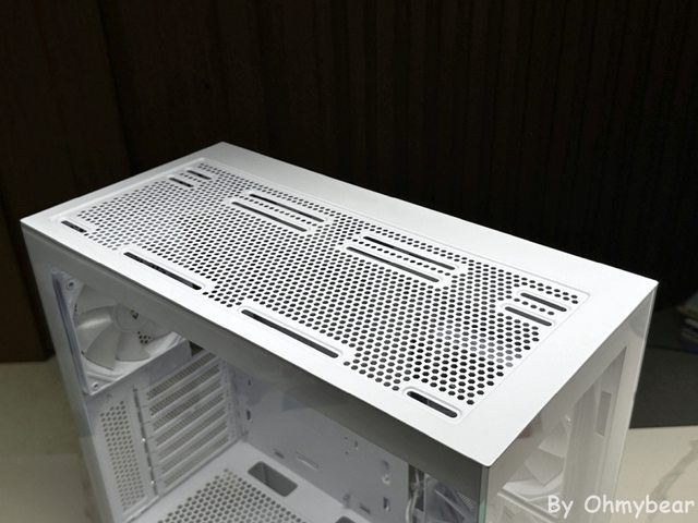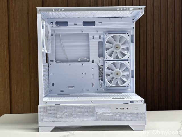後方預裝一顆120mm正向扇葉風扇排風,頂部空間有稍微抬高,安裝厚冷排沒問題。