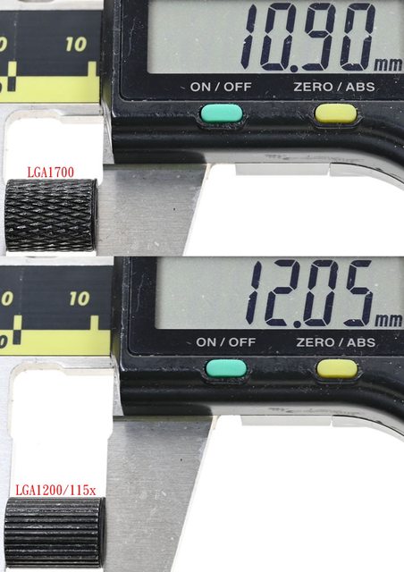 ▼LGA1700托架固定柱含墊片長度10.9mm(上),LGA1200/115x托架固定柱含墊片長度