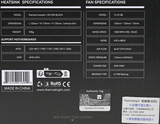 Thermalright索摩樂PEERLESS ASSASSIN 120 MINI BLACK散熱器開箱