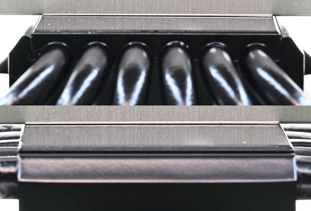 ▼PEERLESS ASSASSIN 120 MINI BLACK(左)與PEERLESS ASSASSIN 120 BLACK(右)的頂部
